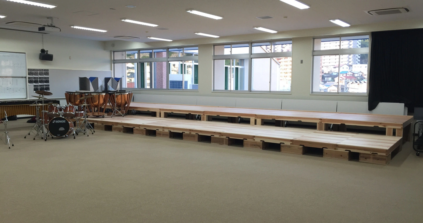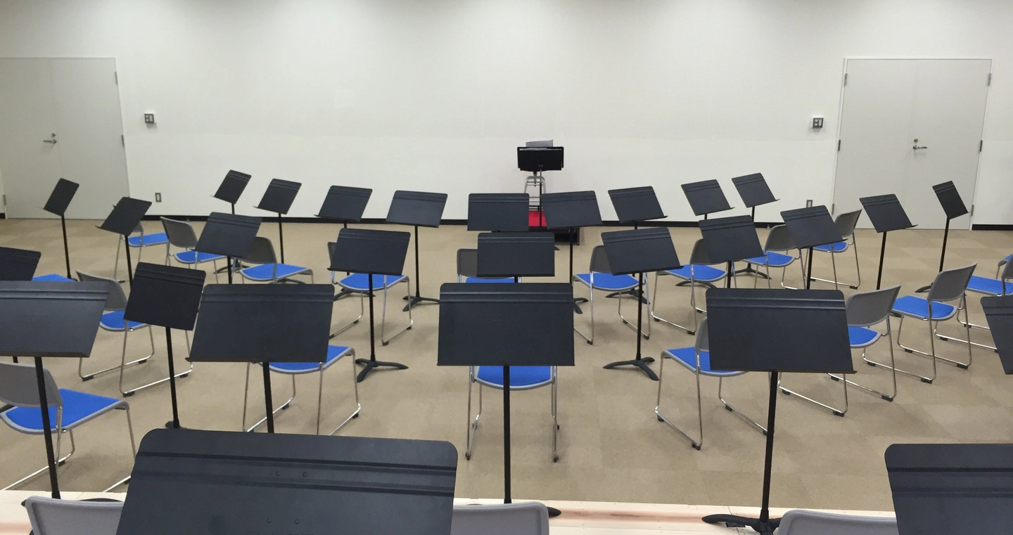 音楽室です。この音楽室で新たな音を紡ぎだします。